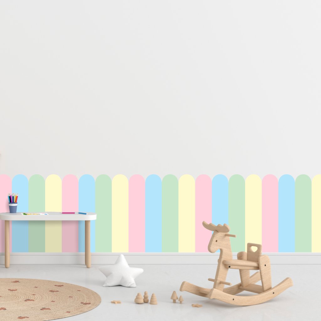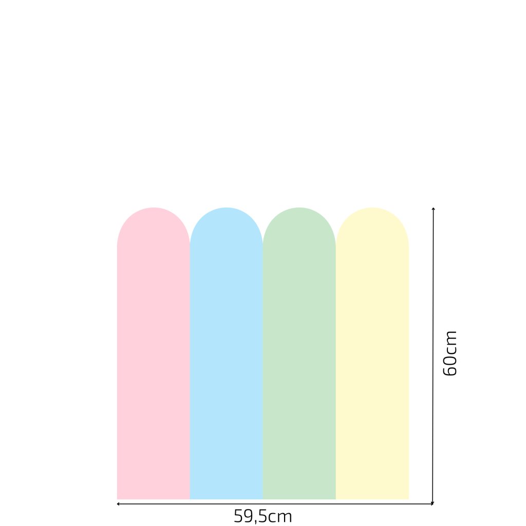 🎨 Ez a gyönyörű “Boltív” öntapadós tapéta tökéletes kiegészítő gyerekszobákba, játszószobákba vagy bármely más térbe, amely egy kis frissítést igényel. 🌈 Ezenkívül a matrica használható ágy mögötti háttérként is, vagy bárhol, ahol szükséged van a fal védelmére a szennyeződésektől. Három különböző magasságban kapható: 100 cm, 80 cm és 60 cm, így pontosan az igényeidhez igazítható.
